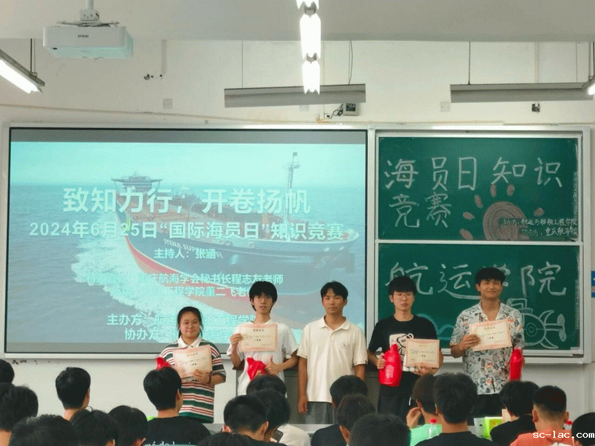 活动接近尾声时,评委程志友老师与董二飞老师发表了深情寄语。他们说,此类知识竞赛活动不仅有效促进了航海知识的普及教育,更重要的是激发了学生对航海领域的浓厚兴趣与热爱之情,为吸引更多有梦想的青年投身于这一宏伟事业奠定了基础。全体师生满怀敬意地向全世界的海员致以崇高敬意,深切感激他们为促进全球贸易流通及人类文明发展所作出的牺牲。