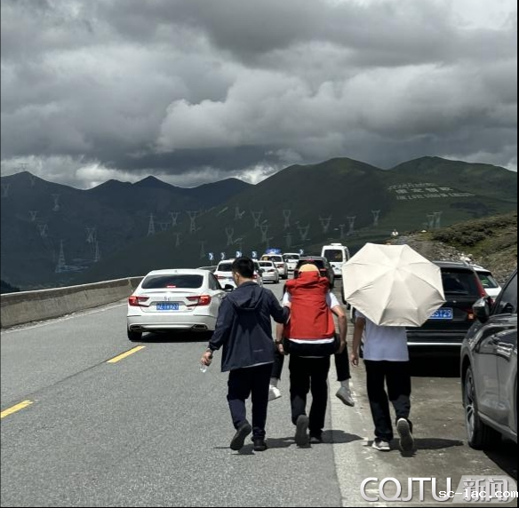 从泸定出发,海拔不断攀升,一千米、两千米、三千米,一直到四千多米,每过一道弯、每翻一座垭口,对团队成员的生理和心理都是一种挑战。经过数小时颠簸,实践团抵达了被誉为“康巴第一关”海拔近4300米的折多山。团队成员陆续出现高原反应,症状不一,但令人感动的是实践团成员高高举起“两路”精神的旗帜,不畏艰难、团结一心、相互支持,在雨中不仅扛着高反状态,还完成了本次“两路·一梦”实践活动第一堂“行走的思政课”录制工作。站在高海拔的折多山机场,2023级硕士研究生文钰鑫深情讲述:“折多山机场已成为连接藏区与外界的重要枢纽,为当地经济发展和民生改善发挥了重要作用。而这背后,离不开那些默默付出的修建工人。”