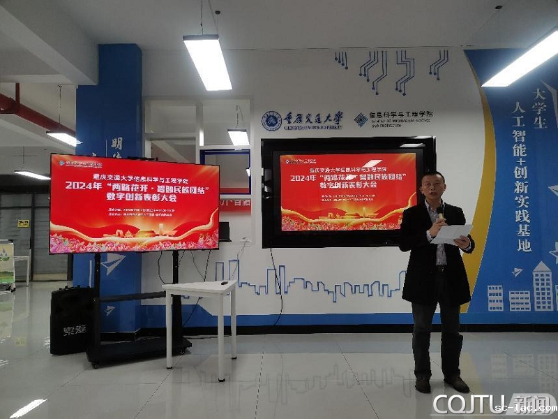 郑廷友书记进行了总结发言,对本次活动给予高度评价,认为此次表彰大会不仅是对参赛选手和工作人员创新成果与辛勤努力的充分认可,更是对全院学生的一次巨大鼓舞,激励大家努力学习、勇于创新。他强调,通过技术水平的提升来展现自我,能够进一步培养同学们对学习的热情与兴趣。此次活动还深化了对“两路”精神的学习与传承,强调了民族团结融合的重要性。