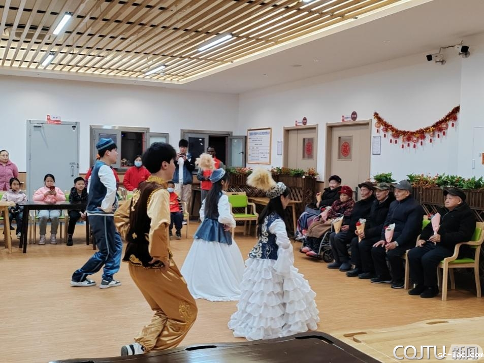 同学们为老人们准备的精彩节目将现场氛围推向高潮。哈萨克族、维吾尔族舞蹈轮番登场,歌曲《我和我的祖国》表达了少数民族学子们对祖国繁荣昌盛的美好祝愿。话剧《三打白骨精》幽默上演,诙谐有趣的情节引得老人们笑声连连。节目既展示了中华文化的多样性,又传递了中华民族一家亲的温暖。