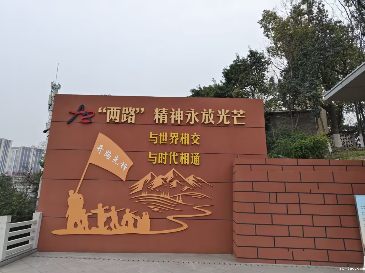 沿着园区前行,梯级步道与车行道相互交错。其中,梯级步道蜿蜒曲折,恰似川藏公路在崇山峻岭间艰难延伸;而车行道相对平坦开阔,正如青藏公路般坦荡豪迈。不远处,1951年代的老校门静静伫立,校门上铭刻着交大人“誓为坦途,甘当路石”的初心。大门左右两侧雕刻的“‘两路’精神薪火相传明德行远交通天下”,更是彰显了一代代交大人接续奋斗、砥砺前行的远大志向,让师生们深刻感受到先辈们为交通事业奉献的坚定决心。