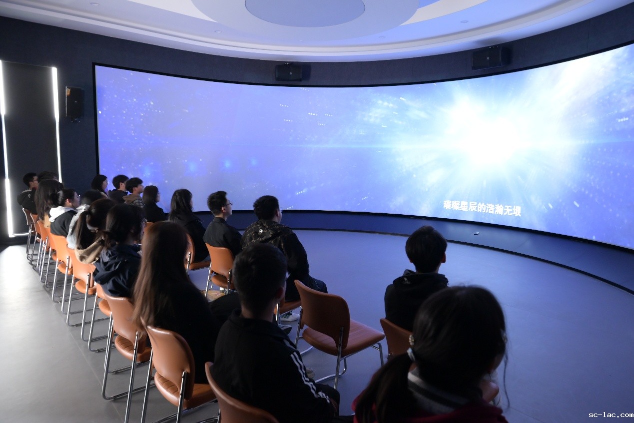 随后,师生们走进220°弧幕影院,沉浸式体验让大家仿佛置身于怒江72道拐的险峻施工现场。逼真的场景、震撼的音效,让师生们真切感受到当年筑路的艰难与不易。据了解,传承者们正在开发“两路”精神VR课程,未来,更多青年将通过数字技术,跨越时空界限,近距离感受红色精神的温度与力量。