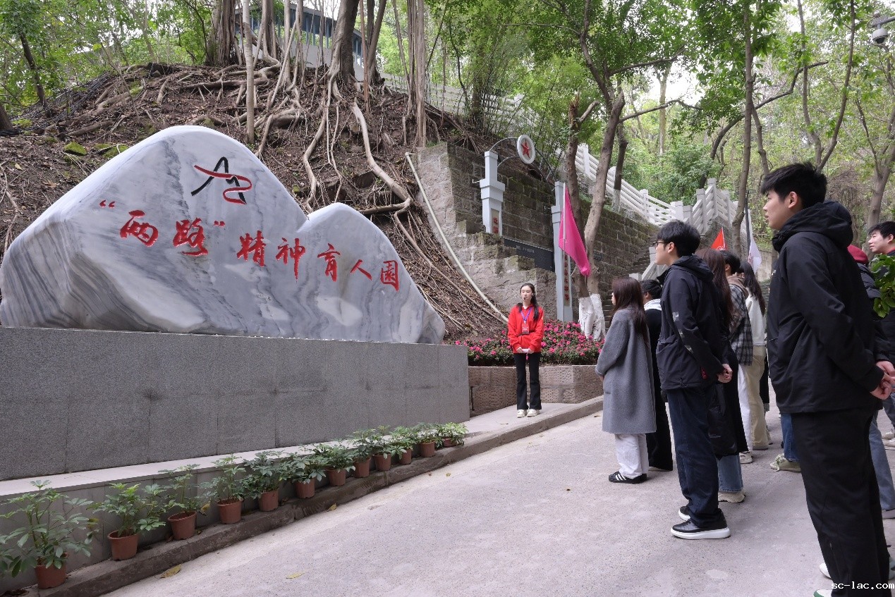 活动伊始,师生们便被入口处一块重达10吨的雅安大理石所吸引。这块大理石,静静矗立,却承载着厚重的历史意义,它是筑路者“甘当路石”奉献精神的象征。其左上角的园区标志,由象征川藏、青藏公路的两条丝带组成,仿佛在无声地诉说着当年筑路的曲折与伟大。引得同学不禁感慨:“这不是一块石头,它分明是11万筑路英雄用生命和热血铸就的不朽精神丰碑。”