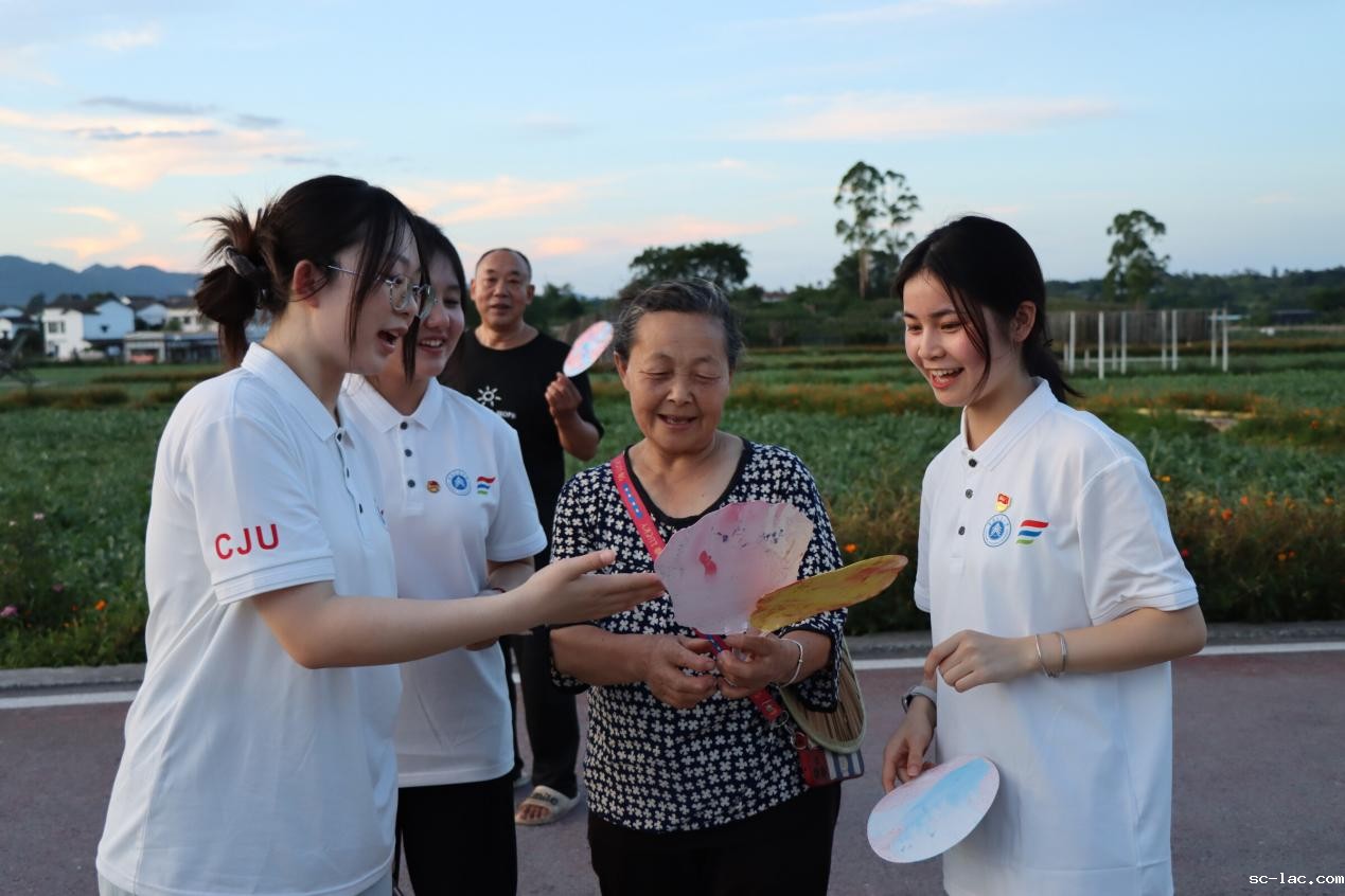 7月2日,老伟德网上娱乐旅游与传媒学院“璧有好事”农文旅融合发展实践团全体成员,在重庆市璧山区七塘镇莲花穴广场,组织当地村民开展了一场特别的“健康中国”主题活动:学习制作国家级非物质文化遗产漆扇,并在亲手绘制的扇面上书写健康生活箴言。