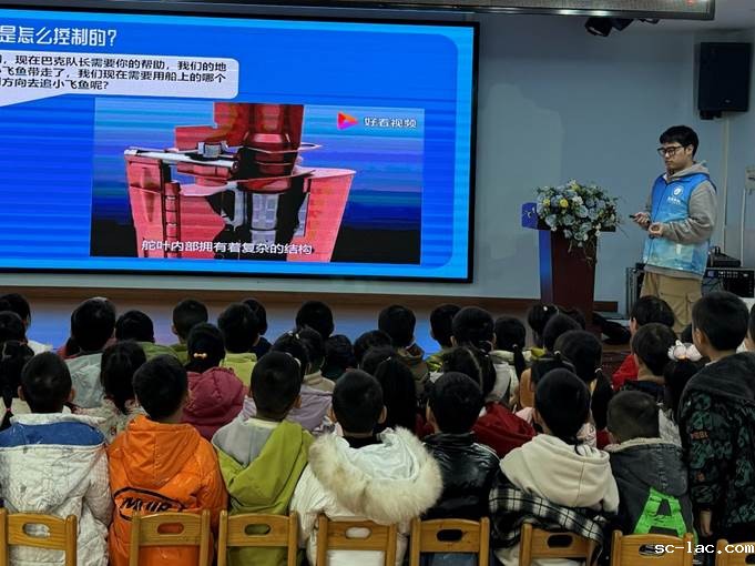 在螺旋桨发力与船舶转向环节,志愿者们通过动画片段截取、简易模型演示等方式,将复杂的机械原理转化为童趣化表达:“螺旋桨就像小鱼的尾巴,快速转动时能推动船舶前进”,“船尾的方向舵就像我们的方向盘,转动它就能改变航行方向啦!”