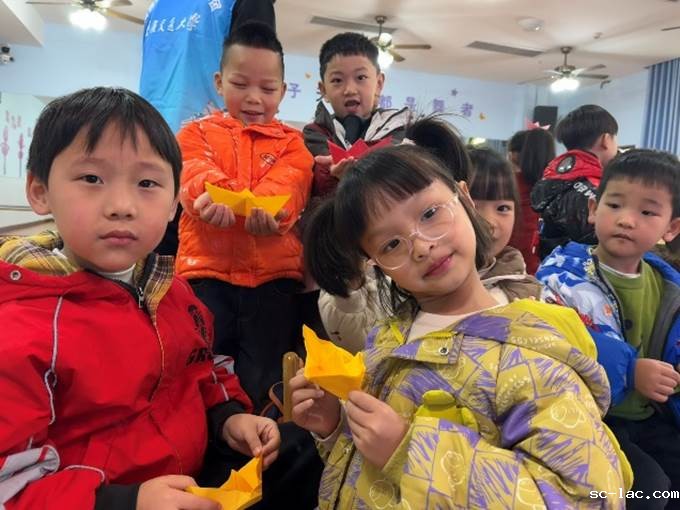 科普讲解结束后,进入手工实践环节。志愿者们分发彩纸,手把手教孩子们折制小船。“先把彩纸对折,再折出船身和船帆...”志愿者们耐心指导每一个步骤,鼓励孩子们发挥想象力,一艘艘色彩鲜艳、造型各异的小船应运而生。看着自己的作品,孩子们脸上洋溢着成就感。