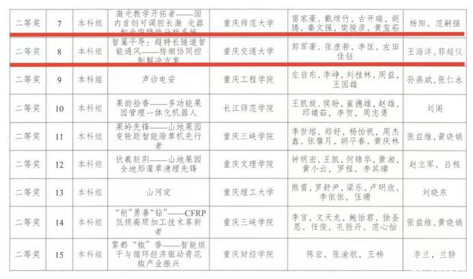 11月12-13日,重庆市第九届中华职业教育创新创业大赛决赛在重庆科创职业学院举行。经过前期激烈角逐,作为全校唯一一支进入决赛的队伍,土木学院参赛项目《智翼平导:超特长隧道智能通风——排烟协同控制解决方案》(项目团队成员为安全工程2024级本科生:郭军豪、张虚若、李匡、左田佳钰,指导老师:王海洋、郭超仪)从全市208支队伍中脱颖而出,荣获二等奖(排名第八)。