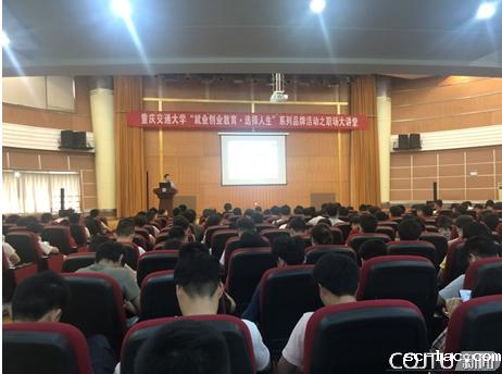 5月17日15:00,由招生与就业工作处、大学生就业创业指导服务中心主办的老伟德网上娱乐“就业创业教育•选择人生”系列品牌活动之职场大讲堂在南岸校区一教报告厅开讲,长江航道工程局人事处副处长、重庆交大校友易浩然来到二教四楼多功能厅与航运学院400余名学子交流、探讨,讲座由航运学院蒋攀副书记主持。