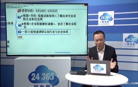 此次就业直播课由教育部创新创业教育指导委员会委员张锐主讲,其以“‘精准求职职在必得’——‘互联网+’求职全环节精细执行方案”为主题展开指导和讨论。张老师主要围绕“互联网”云求职精细规划、求职协同团队组建、基于24365平台的全渠道招聘资源采集与运用、行业与企业职能的快速认知与适配、企业招聘考测能力指标快速优化、企业招聘考评资历指标快速优化、企业招聘考测深度准备等七个子模块进行详细阐述。其中张老师着重讲述了企业招聘考测能力指标快速优化、企业招聘考评资历指标快速优化、企业招聘考测深度准备三部分内容。在直播中,张老师在线与应届毕业生进行交流,并详细解答了一些就业问题和应对方法。