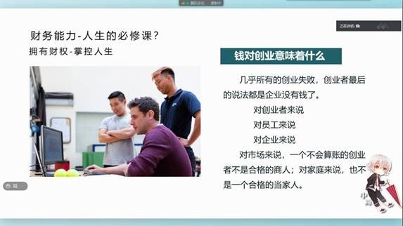 一个不会算账的创业者不是合格的商人。黄静老师在讲座中多次提到这句话,她认为财务始终是创业的核心,因为企业中的每一步都是有代价的,而每一次代价都是以金钱衡量的。创业首先应该活下来,以最小的成本试错并验证项目的可行性,明晰资金在经济业务中的来龙去脉,在企业中形成闭环。除此之外,黄静老师分享了自己创业之初摆摊的经历,深入浅出地分析了如何获得财务能力,而在获得创业的成功后又该如何保卫自己的资产安全,并播放了两段生动有趣的视频,加深了同学们的印象。