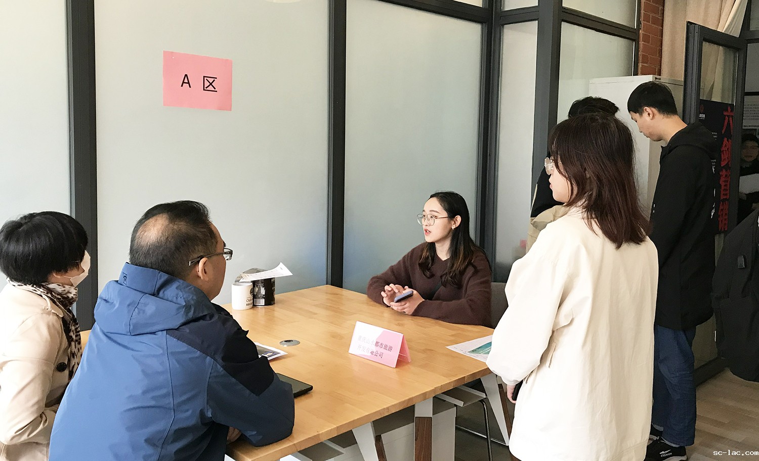 启动仪式结束后,各企业来到招聘室,与同学们进行交流和现场面试。2021届毕业生近100人结合求职目标和实际情况,现场投递简历,与HR面对面沟通,多岗位进行面试,不时听取学院老师意见建议,现场人流穿梭、氛围十分热烈;2018级各专业学生代表也来到现场,投递简历、争取面试,训练胆量、积累经验,寻找实习实训机会和岗位,听取用人单位建议。重庆嘉驰国际公司HR陈莹莹表示,人文学子素质优良、适应能力强、职业精神好,去年招聘的几名优秀毕业生在岗表现优异,因此今年主动申请参加专场招聘,希望继续寻找好苗子;重庆五谷文化传播有限公司董事长、学院2011届校友李俊女生指出,感谢学院的培养,希望拿出的总经理助理、文案策划等岗位,能吸引优秀的学弟学妹加入,共同创业奋斗;重庆安达文化传播有限公司负责人表示,人文毕业生专业素质扎实、整体表现优良,希望能择优录取,为公司储备更多业务人才与管理干部。