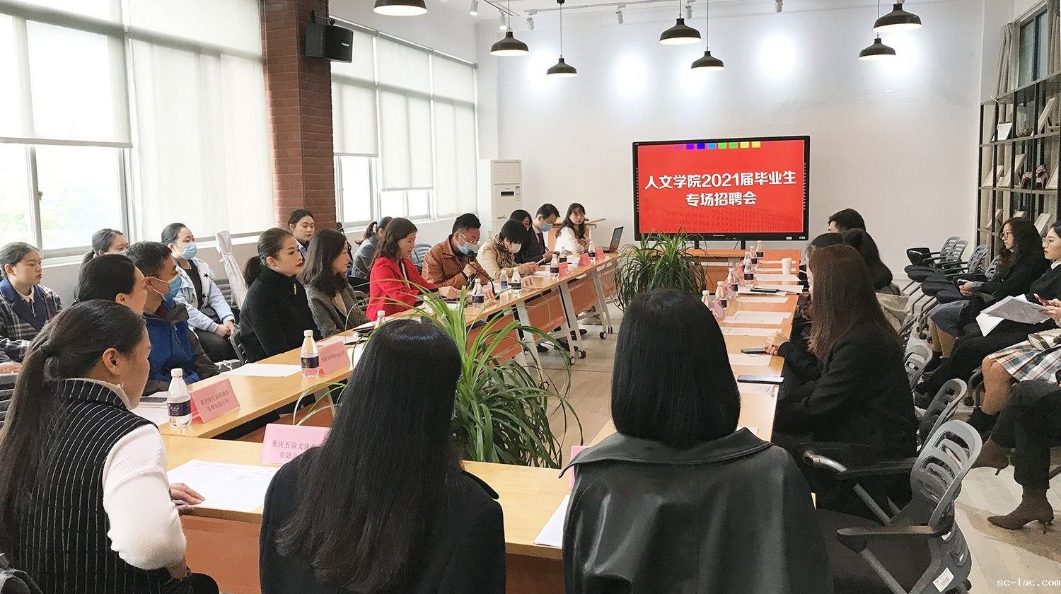 2020年11月6日9:00,人文学院2021届毕业生专场招聘会在第一教学楼414会议室启动,院长张玉蓉、党总支副书记魏巍,人力资源类、文创类、新传类、文旅类等20家企业负责人及HR参加启动仪式。