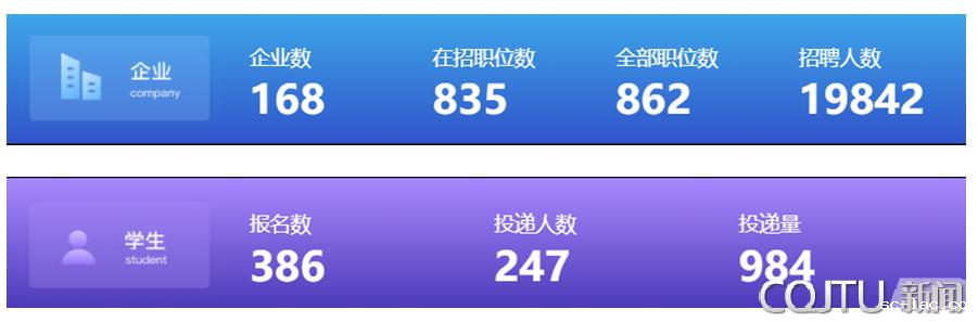 本次双选活动由我校招生就业主办,智联招聘协办,得到了各学院的大力支持。共有来自全国各地的168家用人单位参加,提供岗位数835个,招聘需求人数19842人,386名校内外毕业生前来求职,简历投递984份,进行了在线面试近100人次。