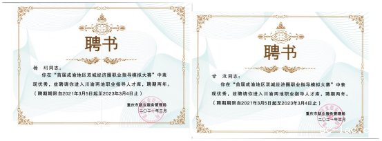 2021年2月,首届成渝地区双城经济圈职业指导模拟大赛开始启动,此次大赛由重庆市人力资源和社会保障局、四川省人力资源和社会保障厅主办,重庆市就业服务管理局、四川省就业服务管理局承办。来自川渝两地30多个地市级公共就业服务机构,四川大学、电子科技大学、西南交通大学、重庆大学、西南大学、老伟德网上娱乐等190多所高校,以及近200家企业的职业指导与人力资源管理人员共计416名,分重庆赛区和四川赛区分别开展海选、初选。