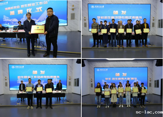 学校为新组建的河南招生就业工作站进行了授牌,并为学校招生宣讲团专家代表、招生就业工作站(河南、海南、山西)校友专家代表、学生招生宣传大使分别颁发了聘书。