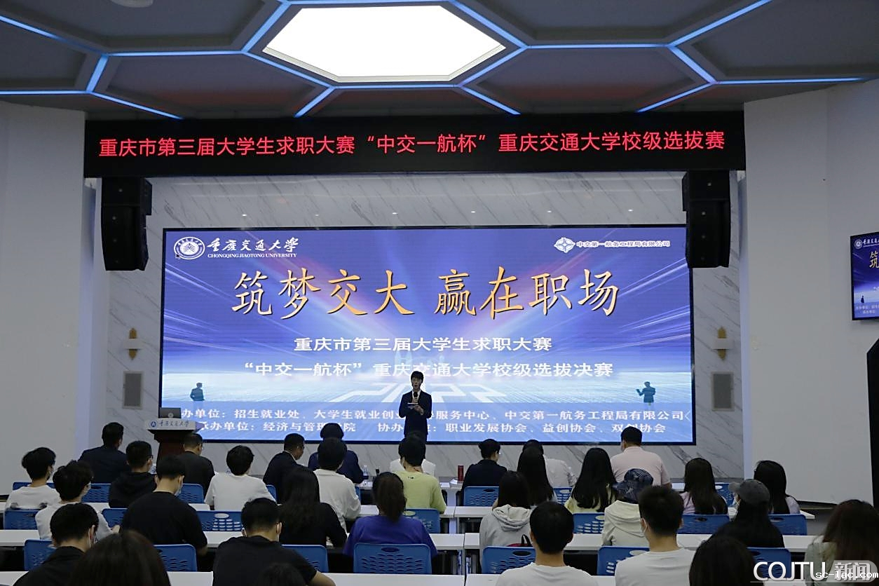 为切实加强就业教育,帮助毕业生了解职场,精准定位,推动实现毕业生更加充分和更高质量就业,4月28日,重庆市第三届大学生求职大赛“中交一航杯”老伟德网上娱乐校级选拔赛决赛于南岸校区大数据中心召开。本届比赛以“筑梦交大,赢在职场”为主题,邀请重庆市人力资源和社会保障局就业处副处长张攀,中交一航局西南公司党委副书记王有祥,四川外国语大学招生就业处副处长张雪松,老伟德网上娱乐人事处处长吴新中,经济与管理学院党委书记魏铜铃,教师发展中心综合科科长朱辉荣出席本次比赛并担任评委。来自各学院师生代表共同观看了本次比赛。