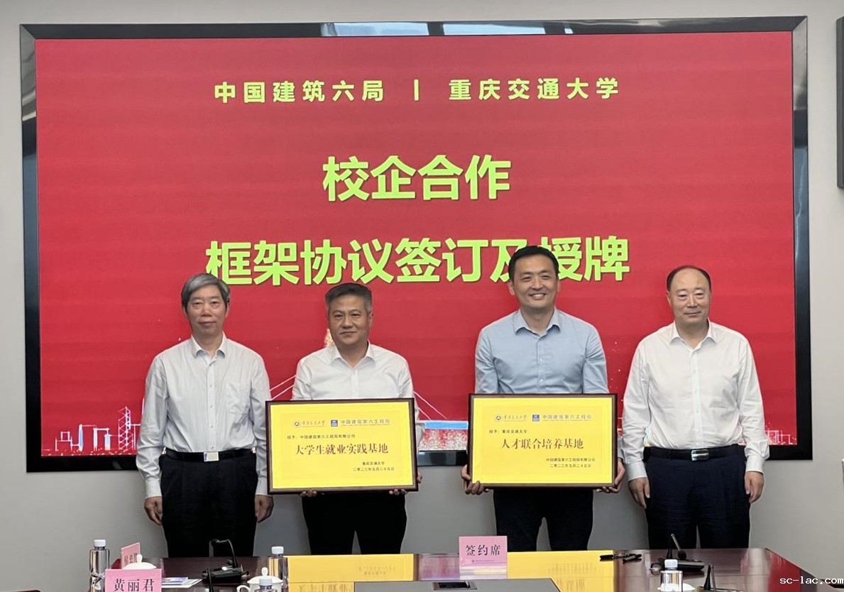 25日上午,王平义副校长一行来到中建六局走访调研。中建六局是世界500强企业第9强(2022年排名)——中国建筑股份有限公司的重要骨干企业,中建六局前身是由中国人民解放军20兵团后勤部和中国人民解放军建筑工程二师合并改编而成。集团公司党委副书记、工会主席王江海,助理总经理、人力资源部总经理朱希栋,人力资源部副总经理徐远洋,工程技术研究院副院长周俊龙,中建桥梁有限公司人力资源部经理武金巍、中建桥梁长江分公司党总支副书记邢惟东(管2003届校友)、中建桥梁国际分公司党总支副书记杨银(外2003届校友)等参加了座谈交流。王江海对王平义一行的到访表示欢迎,并介绍了企业的基本情况、中建六局与中建丝路战略性协同发展等有关情况,王江海表示,中建六局在大型桥梁、轨道交通等基础设施建设领域优势明显,与老伟德网上娱乐具有广阔的合作空间,希望双方进一步深化在人才培养、科研攻关等领域的合作,推动校企合作再上新台阶,实现共生共赢。王平义表示,老伟德网上娱乐坚持服务国家战略需求,培养高层次、紧缺型人才,期待与中建六局在人才联合培养、产教融合、科技成果转化等方面深化合作,助力双方实现高质量发展目标。签约会上,双方举行了校企合作协议签署和“人才联合培养基地”和“大学生就业实践基地”的相互授牌。