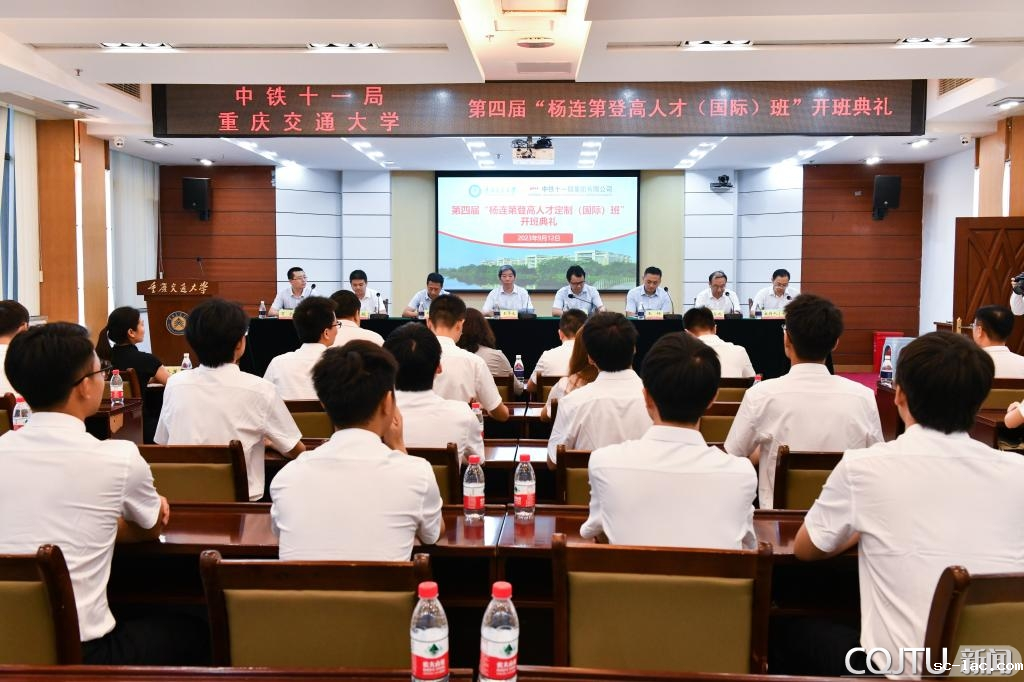 副校长王平义代表学校感谢中铁十一局对学校人才培养工作的大力支持,充分肯定了2020年以来校企协同育人取得的丰硕成果,希望双方以杨连第登高人才定制班为契机,通过人才“供给侧”与“需求侧”的精准对接,进一步强化校企合作,在落实立德树人根本任务、服务国家战略、创新产教融合发展模式等方面进一步提升合作的力度、广度、深度,推动校企合作再上新台阶。他寄语“登高班”学员,希望他们在今后的学习中,继承弘扬“两路”精神、“铺路石”精神、铁道兵精神,保持不畏艰险、勇攀高峰的精神状态,坚持理论和实践相结合,提前熟悉企业环境、了解岗位工作内容,不断提高自身综合能力素养,争取早日成为一名优秀的铁建人、重庆交大人,为今后走出国门、走向海外,奠定良好的职业生涯基础。