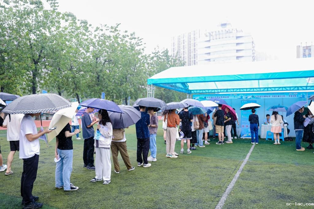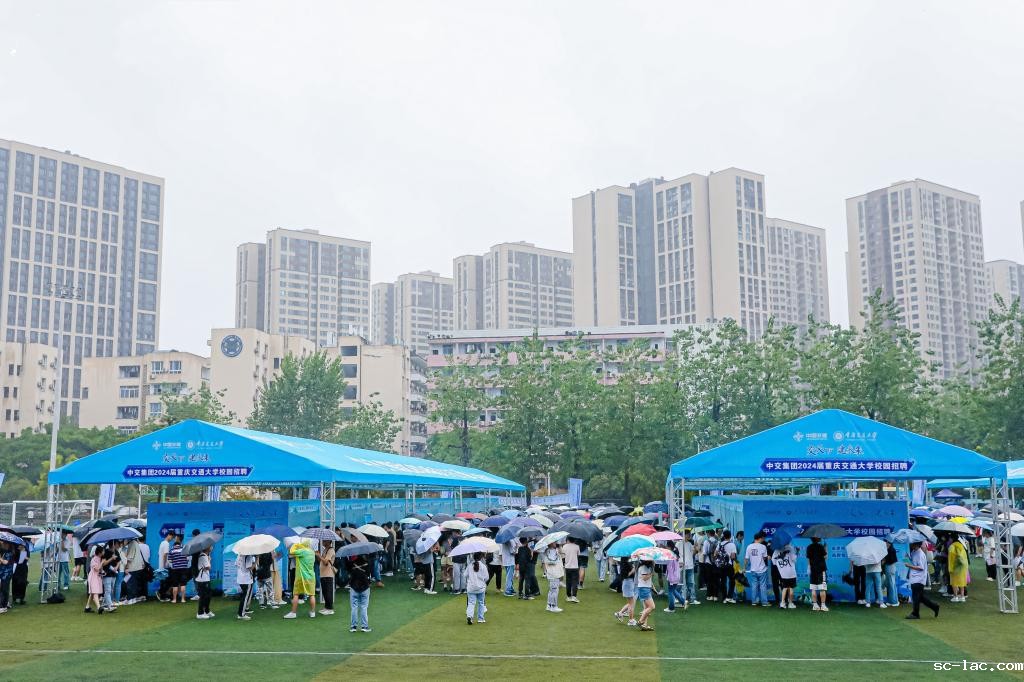 12日上午9点,中交集团旗下31个二级局、126家三级单位在南岸校区运动场开展了专场招聘活动。虽然大雨不断,活动现场仍是热火朝天、人头攒动,毕业生们风雨无阻、勇往直前,各个展位前都排起了咨询信息、投递简历的长队,大家为着自己的职业发展努力争取宝贵的机会。王平义、王涛、吴松等校企领导来到招聘会现场,与毕业生们亲切交谈,鼓励大家积极就业;与用人单位招聘代表深入交流,了解招聘情况。