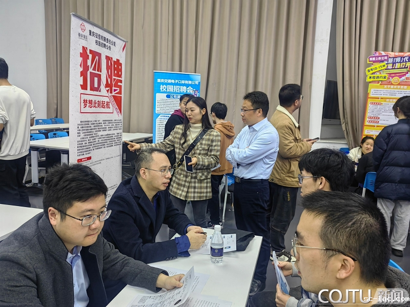 本次招聘会共有16家单位前来招聘,其中包括重庆市通信产业服务有限公司、重庆交通电子口岸有限公司、百度公司、康冠科技股份有限公司等多家国企及上市公司。前来应聘的学生有150余人,学生们热情高涨,积极投递简历,就薪资待遇、职业发展、工作环境等方面的问题积极与招聘单位沟通交流。