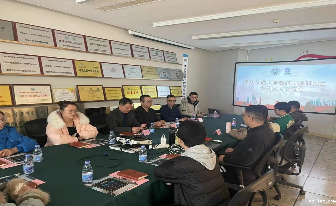 重庆翰海睿智大数据科技股份有限公司副总经理雷悦、市场经理赵颖萍,数学与统计学院学科办主任彭再云、实验教学中心主任蒋伟、数学与应用数学系副主任陈晓丰三位老师带领着12名系统科学研究生进行了参观实习,双方就系统科学学生实习方式、实习内容以及培养基地建设事宜进行了深入交流和研讨。