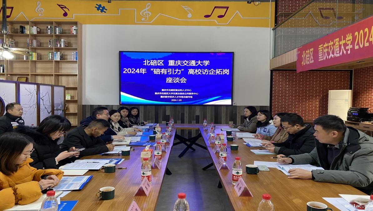 为进一步深化校政企产教融合、深耕成渝双城经济圈就业市场,1月25日上午,学校招生就业处副处长袁理、机电学院党委副书记林兴冬、材料科学与工程学院党委副书记黄丽君、经济与管理学院党委副书记张韩笑、外国语学院党委副书记文亚星及招生就业处干部曾琦一行六人赴北碚区大学生就业创业公共服务中心调研交流。北碚区就业和人才中心副主任王孝益、大学生就业创业公共服务中心主任钟立华和相关科室负责人参会,中铁二十二局集团第五工程有限公司、重庆市二零八地质环境研究院有限公司、重庆千牛建设工程有限公司、重庆睿蓝汽车制造有限公司、倬方钻探工程集团有限责任公司、重庆顺多利机车有限责任公司、神驰机电股份有限公司、重庆惠正机械制造有限公司、重庆银河试验仪器有限公司、重庆欣乐美义齿有限公司等十家国企、民企代表参与交流。