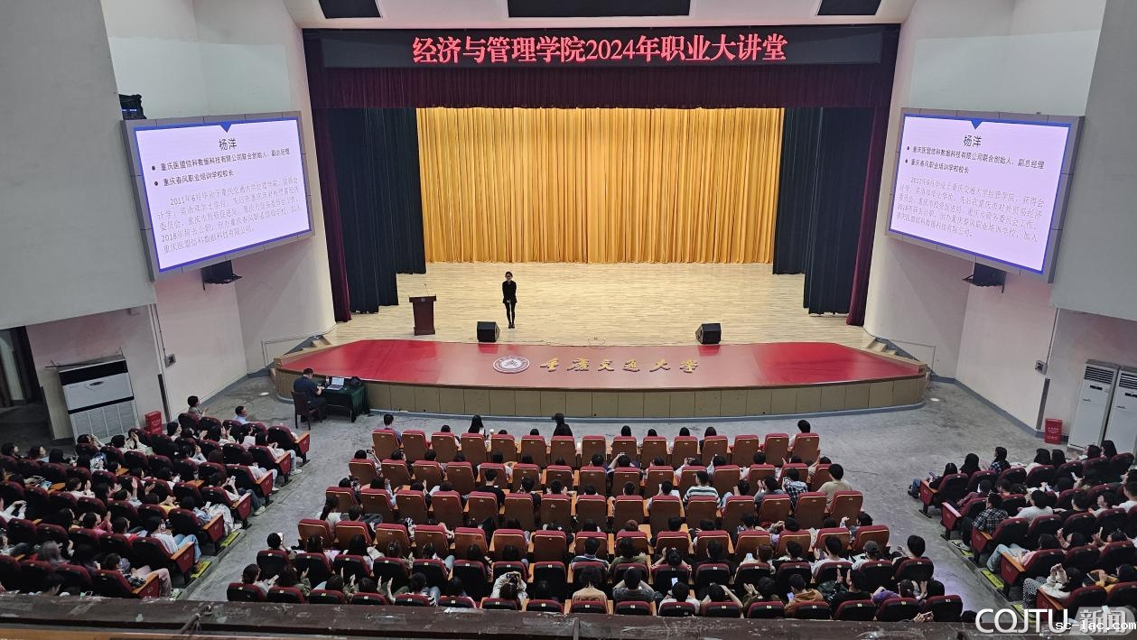 6月3日,经济与管理学院在南岸校区学术交流中心举办职业大讲堂,邀请会计专业2007级校友杨洋作主讲嘉宾,为2021级近800名同学带来了职场的宝贵经验分享,帮助同学们树立正确就业观念、明晰职业方向。经管学院党委负责人、辅导员等参加,党委副书记张韩笑主持讲座。