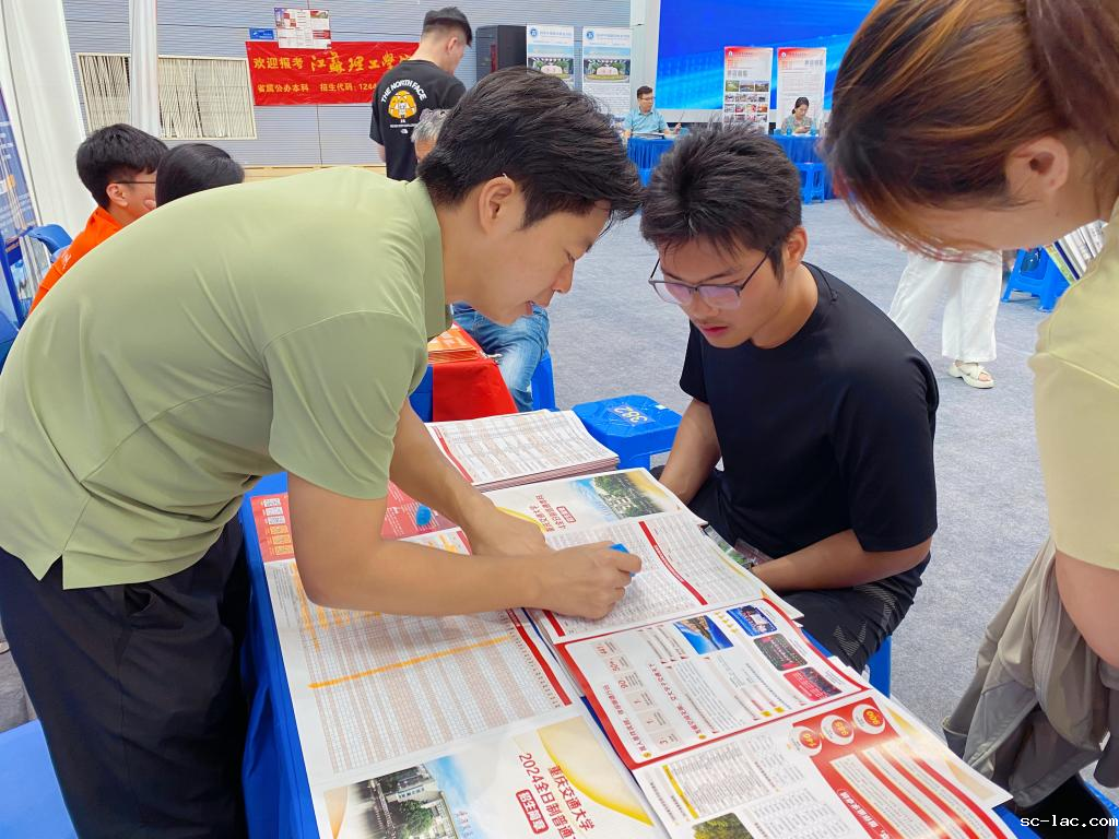 活动期间,学校教师对接了江苏省教育考试院和江苏省高校招生就业指导服务中心等单位,在扬州市职业技术大学设立了高考咨询展位,并在展场入口处醒目位置悬挂了学校的横幅。咨询当天,学校教师在招生宣传现场发放招生宣传材料,与优秀学子及家长近两百人进行了线下面对面交流,全面介绍了学校的学科专业设置、人才培养特色以及学校的建设与发展。学生及家长围绕录取分数线、校园环境、考研、学生就业情况等问题进行了咨询,表现出对我校的极大热情。作为省外高校代表,省内媒体对我校展位进行了采访。