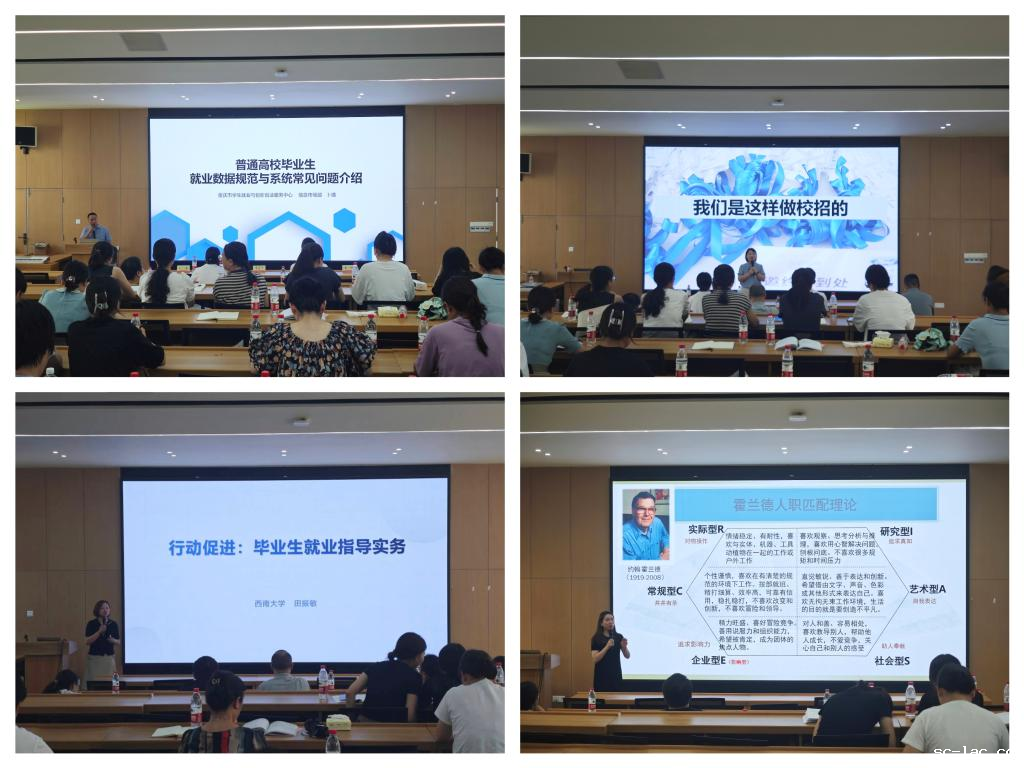 重庆市学生就创中心信息市场部副部长卜靖为大家讲解了毕业生就业信息平台使用和数据规范要求;西南大学招生就业处田振敏老师从“就业指导实务开展事项”为切入点,系统讲授了毕业生辅导员有的放矢开展就业指导工作的方法;长安福特招聘及培训负责人陶铭娟立足企业角度,分享了企业的校园招聘思路和流程,建议老师们加强对学生专业知识学习、综合职业素养提升和求职技巧等方面的指导帮助;