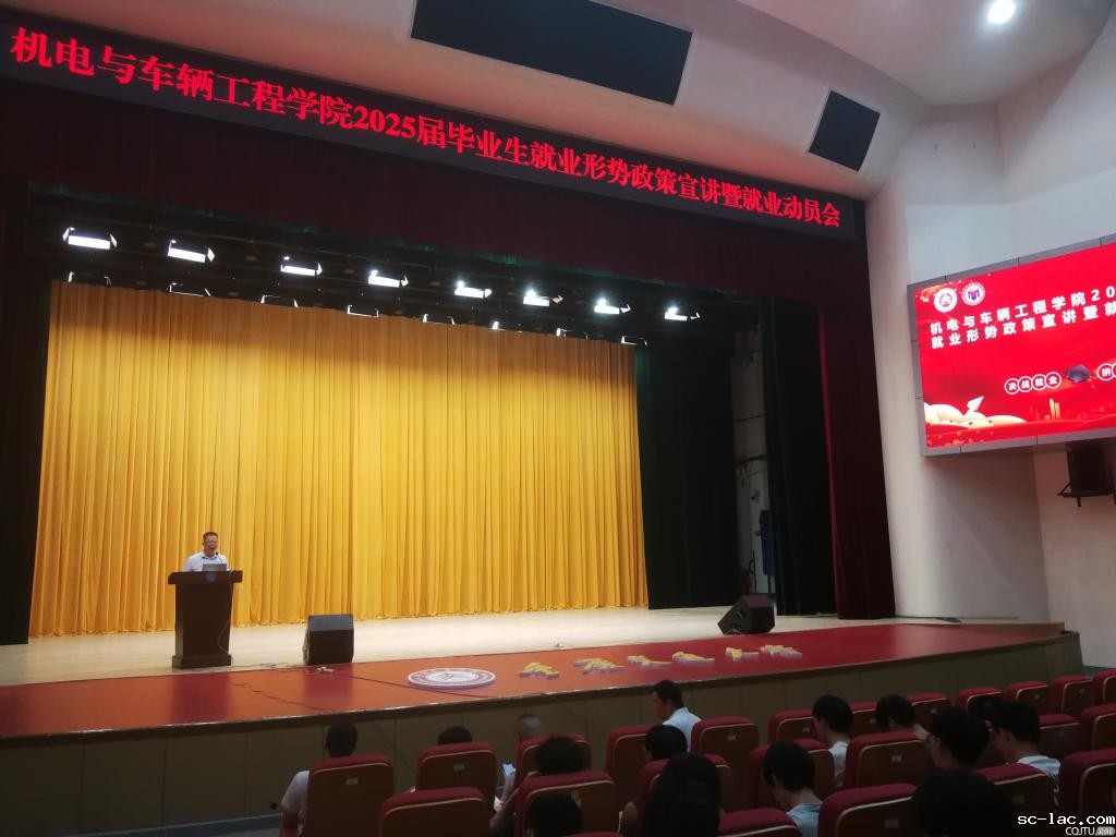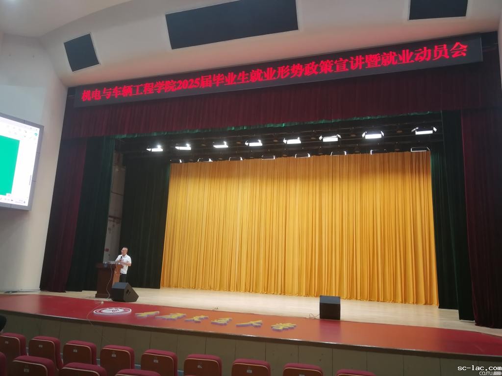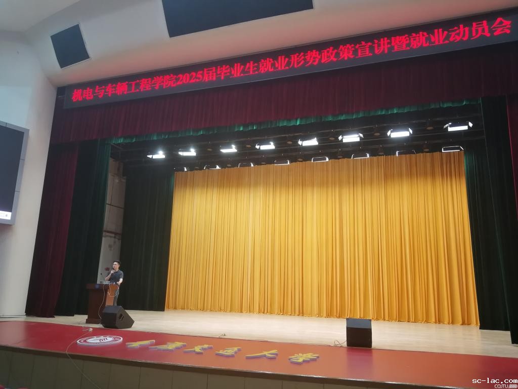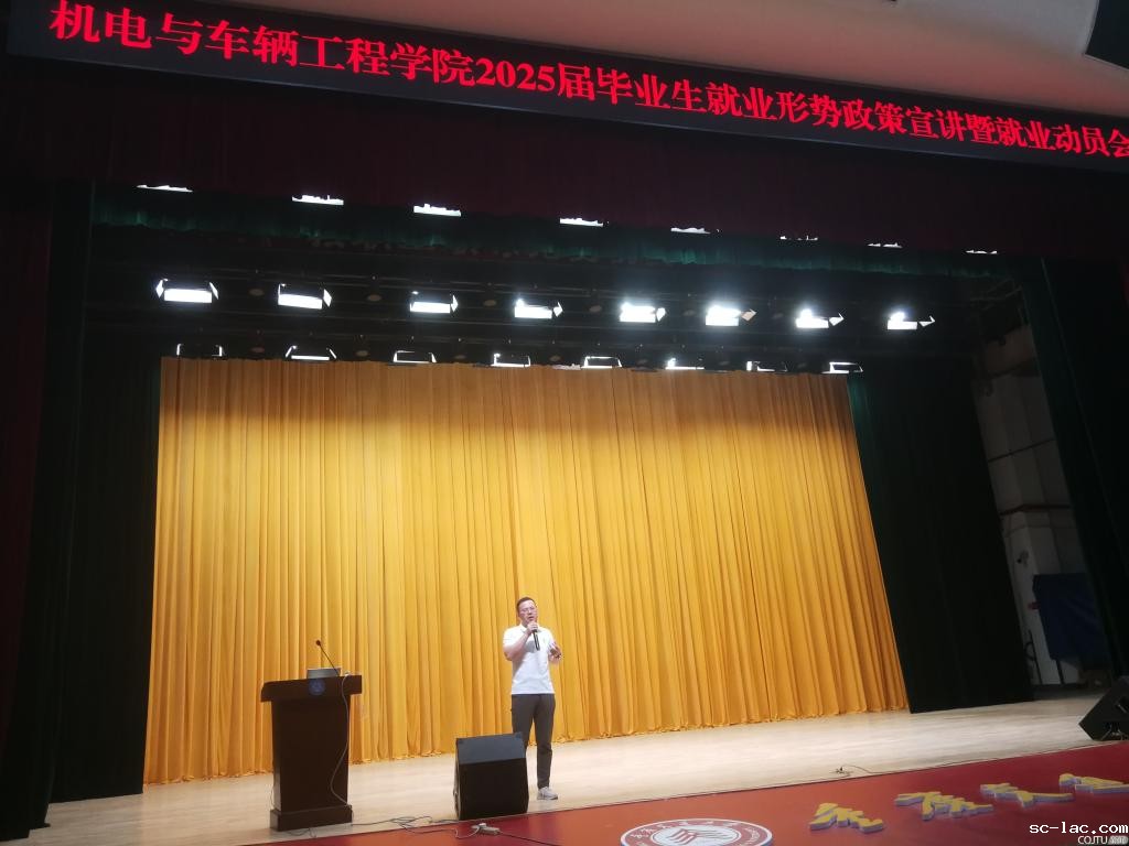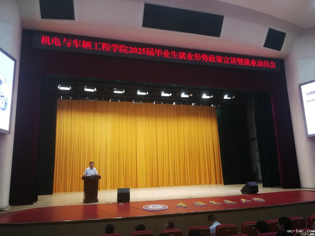 活动现场座无虚席,气氛热烈而庄重。学院院长赵树恩教授首先上台,为与会人员带来了详尽的就业形势与政策分析。他结合当前国内外经济形势,深入剖析了机电与车辆工程领域的就业前景,为毕业生们提供了宝贵的行业洞察和就业建议。赵院长的发言既高屋建瓴又贴近实际,赢得了在场师生的阵阵掌声。