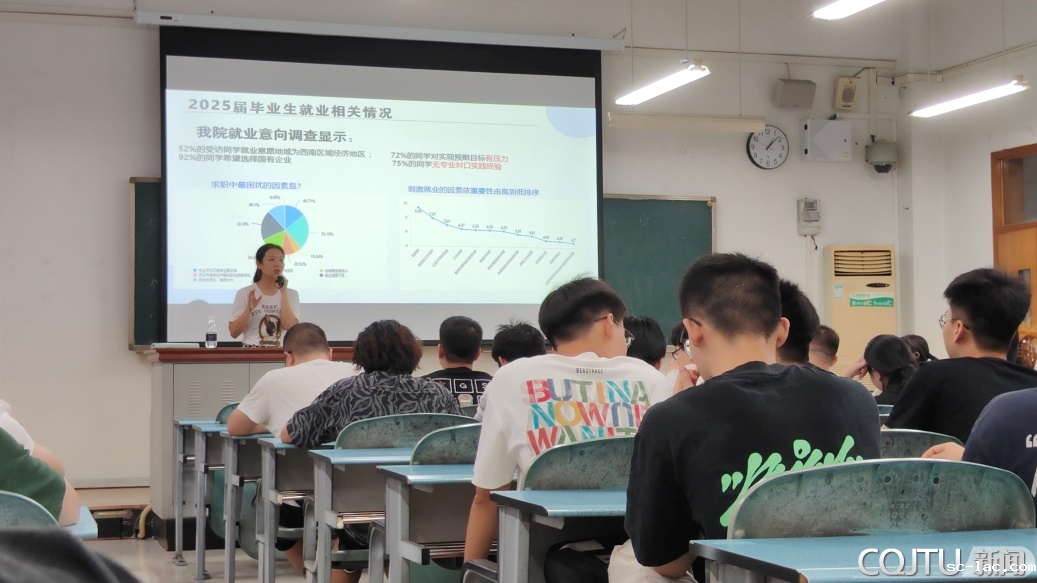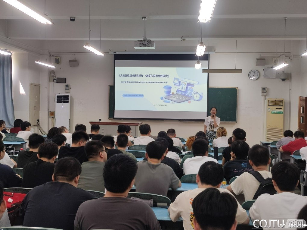 9月13日中午,在南岸校区二教20306教室,智慧城市学院召开2025届毕业生就业动员大会。学院党委副书记王净萍与学院2025届毕业生济济一堂,共话就业形势,同谋就业规划。