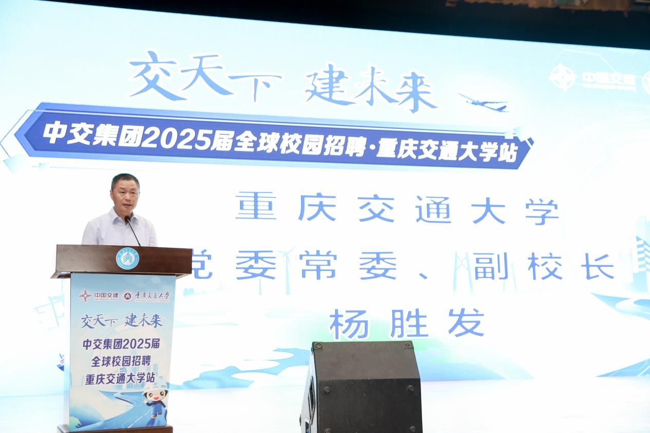 杨胜发副校长会上作了热情洋溢的讲话。他指出,中交集团作为中国领先、世界一流的企业,创造了令人骄傲的业绩,一批又一批的重交学子加盟其中并逐渐成长为企业的中流砥柱。他希望2025届毕业生一定要明晰就业形势、抢抓就业机遇,积极参与中交集团招聘活动,自信乐观展现重交学子风采,为职业发展全力以赴、不留遗憾,做无愧于时代的铺路石。