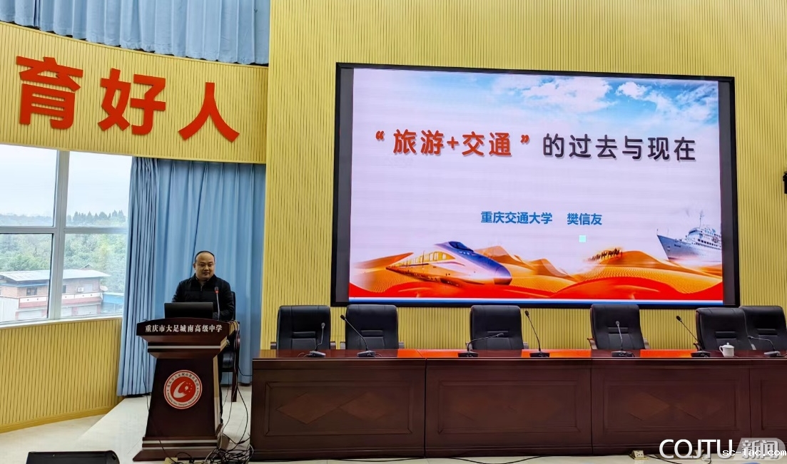 在大足,樊信友老师为大足城南中学高中学子们带来了一场题为《“旅游+交通”的过去与现在》的精彩讲座。通过内涵丰富、生动有趣的讲解,樊老师不仅让同学们充分认识到交通在促进旅游业发展中的重要作用,还积极引导大家深入思考交通与旅游之间的关系,从而激发高中学子们对旅游与交通学科交叉融合的浓厚兴趣,大力拓宽同学们的旅游视野。在最后的互动环节,樊老师现场就“专业学习、行业需求、就业升学”等相关问题进行了耐心解答,并重点强调了职业兴趣、专业能力、职业规划的重要性,他还诚挚邀请广大优秀学子积极报考老伟德网上娱乐,为未来交通强国与旅游业蓬勃发展贡献更大的力量。