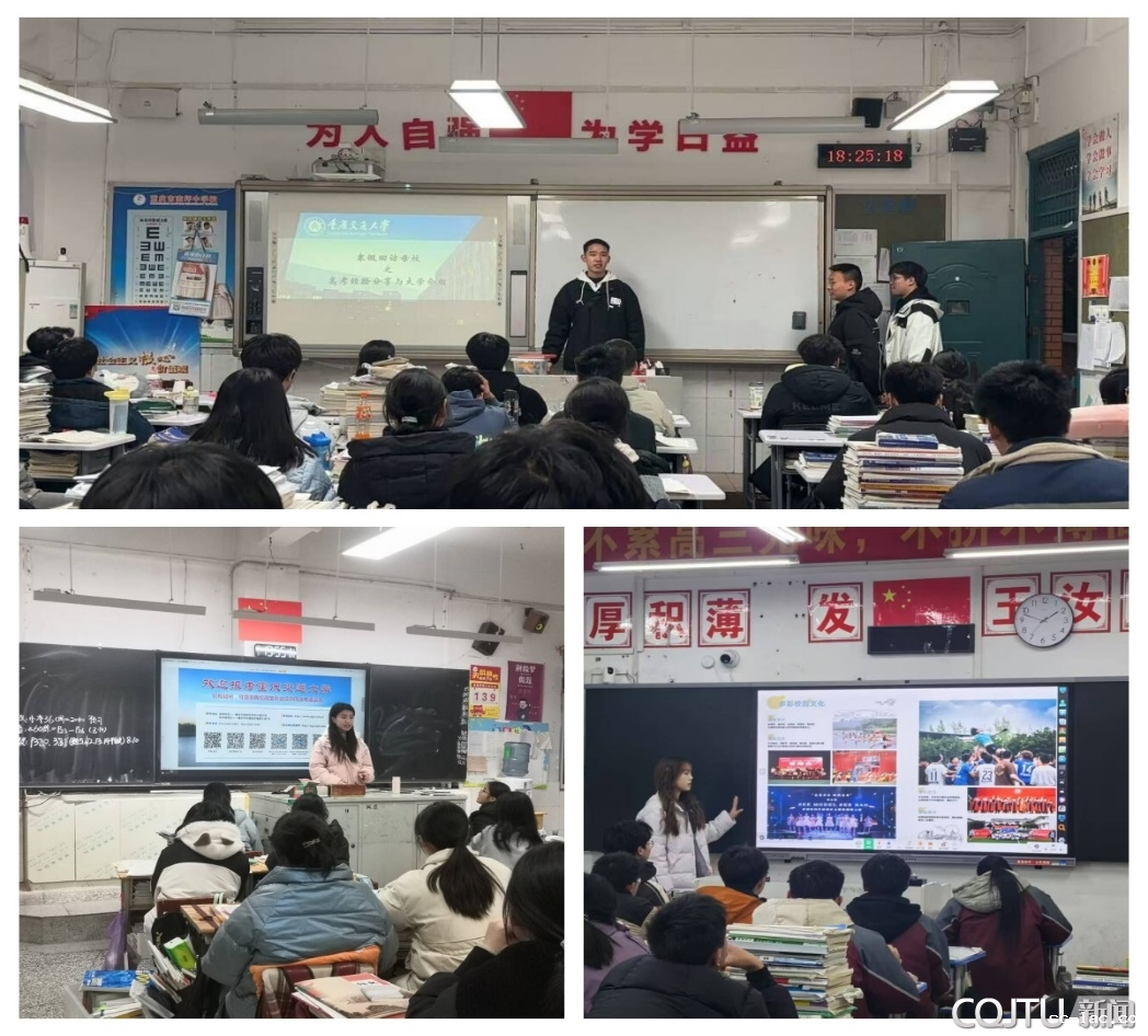 活动紧扣“全员、全过程、全方位”育人理念,对学生组织专题培训,讲解政策、传授沟通技巧,并配备指导教师实时跟进。宣讲中,新生们介绍学校学科优势与专业特色,结合“五育并举”要求,设计互动环节,分享高考经验、校园科技创新故事、文体活动案例,讲述志愿服务生活,优秀学子喜报进校园,并鼓励即将步入大学校园的学弟学妹努力学习的同时,积极参与社会实践,形成“德智体美劳”全面发展的成长观,激发学生的报考热情。