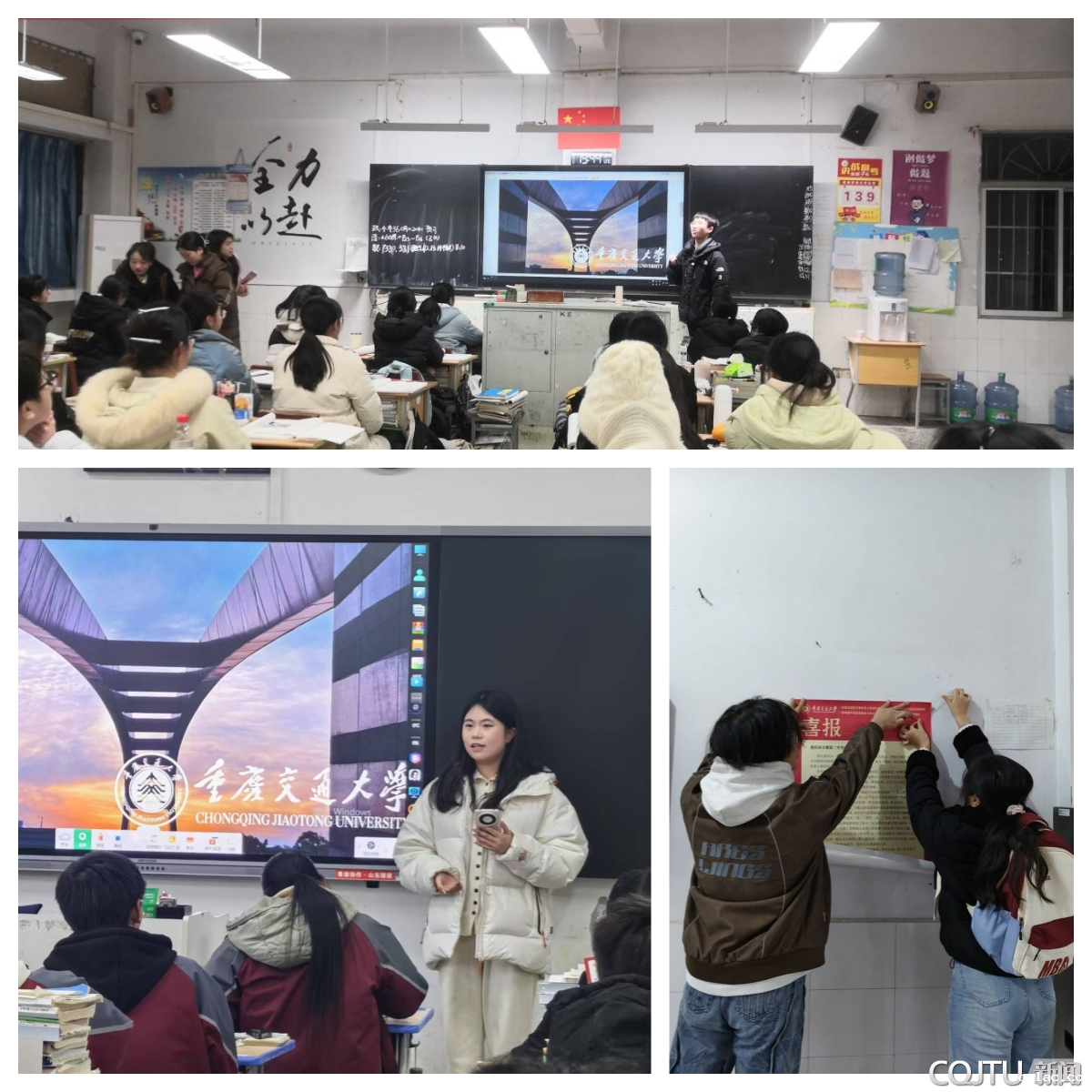 为深入贯彻落实新时代“三全育人”“五育并举”教育理念,厚植大学生家国情怀,学院积极响应学校号召,于2025年寒假期间组织2024级新生开展深入中学招生宣传社会实践活动。本次活动以“两路”精神为引领,通过学生返乡宣讲、实践育人等形式,将思政教育融入社会实践,助力招生宣传与人才培养深度融合,展现交大学子的责任担当与青春风采。