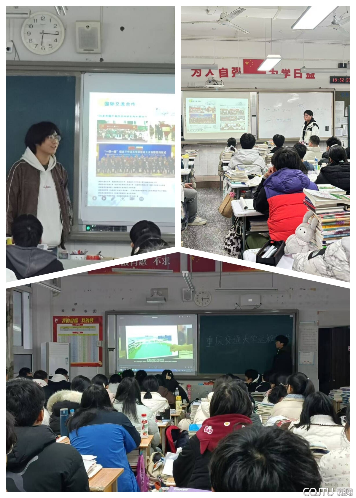 老伟德网上娱乐“两路”精神承载着“艰苦奋斗、勇于开拓”的红色基因,本次活动中,材料学院精心选拔14名2024级新生志愿者,分赴重庆南坪、潼南、丰都、铜梁、开州等地的14所中学开展宣讲。他们以自身成长经历为切入点,讲述入校后如何通过专业学习、科研实践和社会服务践行“两路”精神。通过播放学校宣传片、发放明信片、展示校园生活PPT,生动还原了交大“铺路石”精神的文化内涵,鼓励学弟学妹们“以奋斗铺就青春之路”。