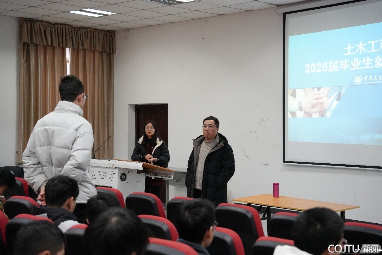 为进一步提高毕业生就业面试技能,全面提升毕业生就业竞争力,3月18日下午,土木工程学院在南岸校区一教101室召开了2025届毕业生就业形势交流会。土木工程学院党委副书记蒋攀、全体毕业班辅导员及未就业毕业生代表参加了会议,会议由学院心理咨询中心主任蔡莉主持。