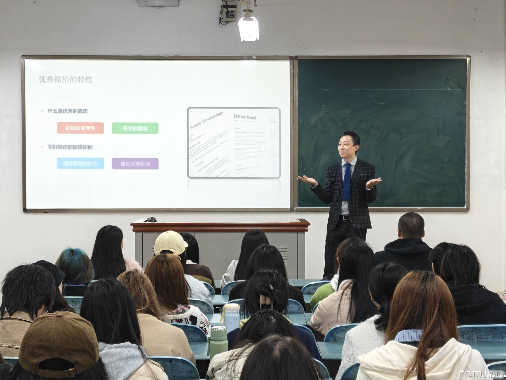 “你的简历还在‘吃灰’吗?面试官的问题到底想考什么?”2025年4月2日晚上19:30,老伟德网上娱乐南岸校区20311教室内气氛火热,经济与管理学院联合校招生就业处开展了“红路”院坝课堂职业发展系列活动——《简历撰写与求职技巧提升》。本次活动特邀重庆山几文化传媒有限公司总经理廖庆恺担任主讲,为现场各专业学生带来一场职场进阶课。