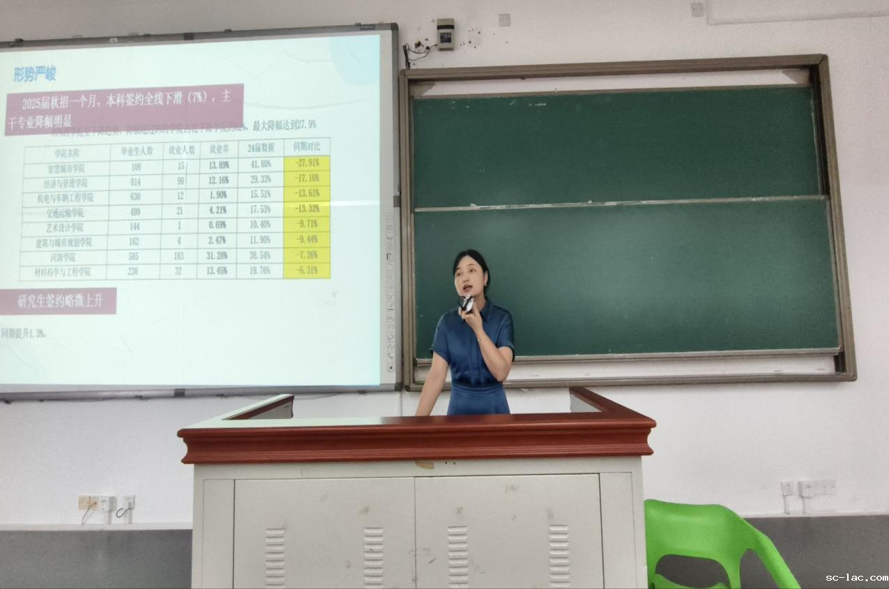 为帮助2026届毕业生准确把握就业市场动态,树立正确的就业观与择业观,科学规划职业生涯,2025年9月9日12:30,材料科学与工程学院在科学城校区A01238教室召开2026届毕业生就业动员会。本次会议由学院党委副书记黄丽君主讲,全体2026届材料学院学子参会。