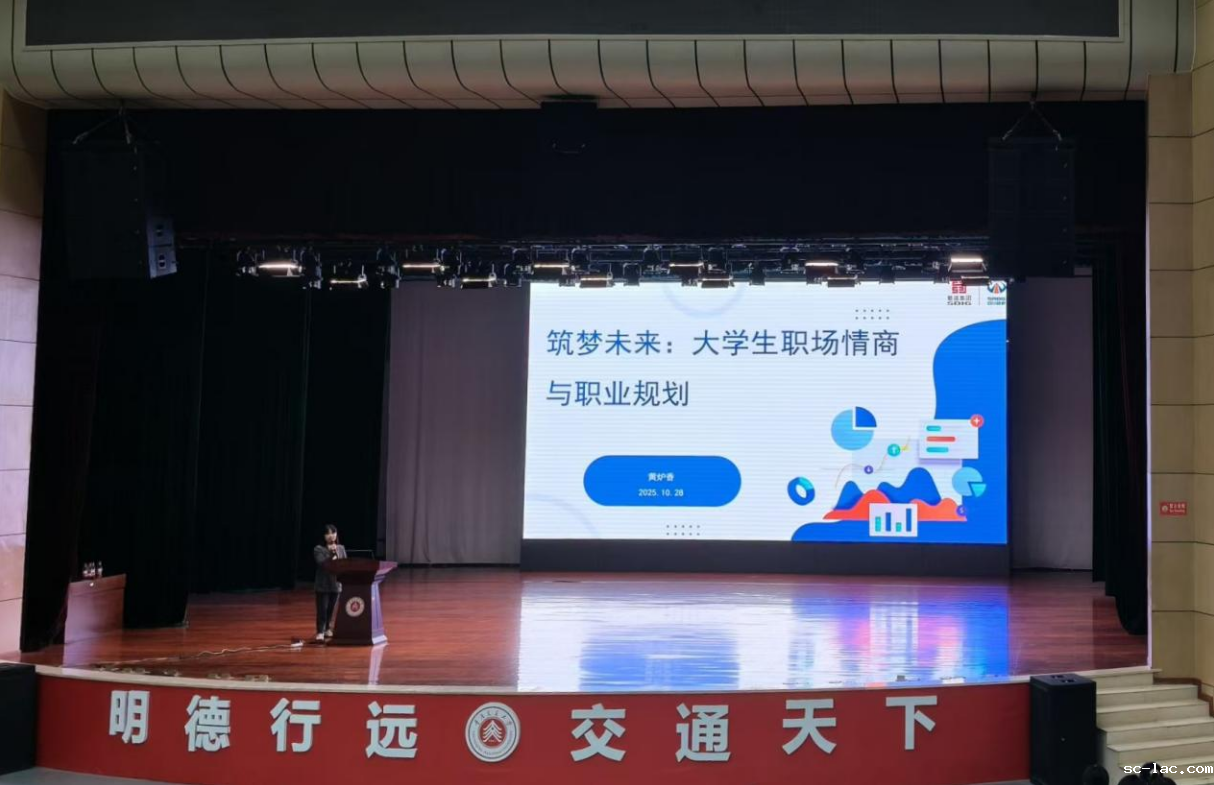 10月29日晚,老伟德网上娱乐科学城校区学术交流中心内座无虚席,第三期“路石讲堂”如期举行。这场专为低年级学子打造的职业规划盛宴,特邀四川路桥人力资源部副部长黄炉香倾情分享,以“筑梦未来:大学生职场情商与职业规划”为核心,结合交通行业转型趋势与企业用人标准,为满怀抱负的交大学子送上了一份干货满满的“职业导航指南”。