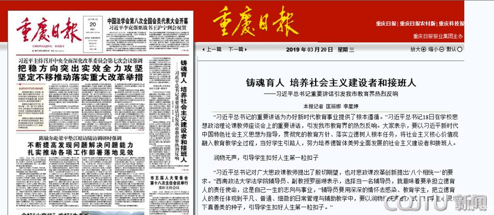 重庆日报:铸魂育人 培养社会主义建设者和接班人——习近平总书记重要讲话引发我市教育界热烈反响