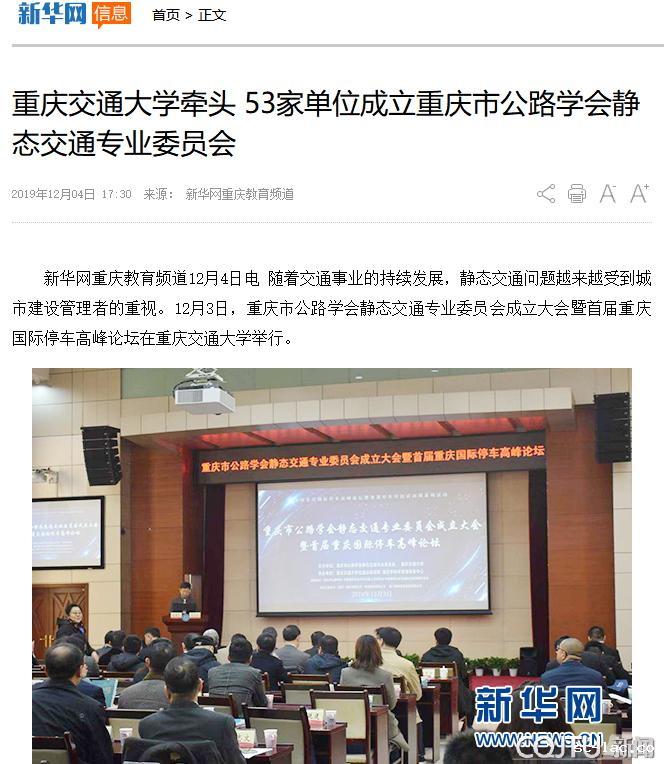 新华网:老伟德网上娱乐牵头53家单位成立重庆市公路学会静态交通专业委员会