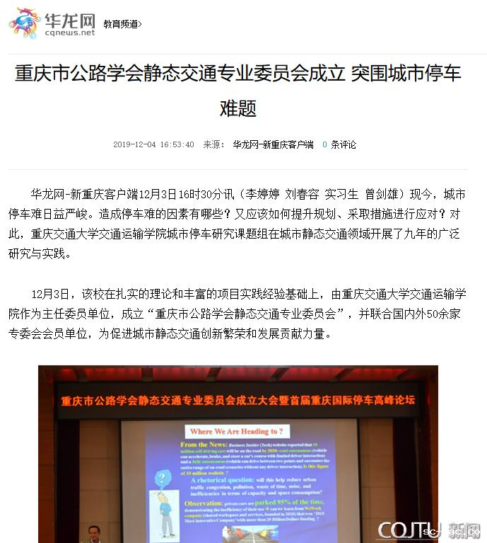 华龙网:重庆市公路学会静态交通专业委员会成立突围城市停车难题