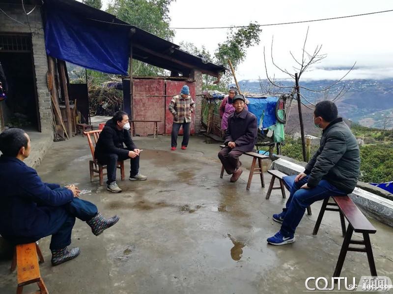 走访贫困户杨开明,宣传疫情防控知识、关心春耕生产情况