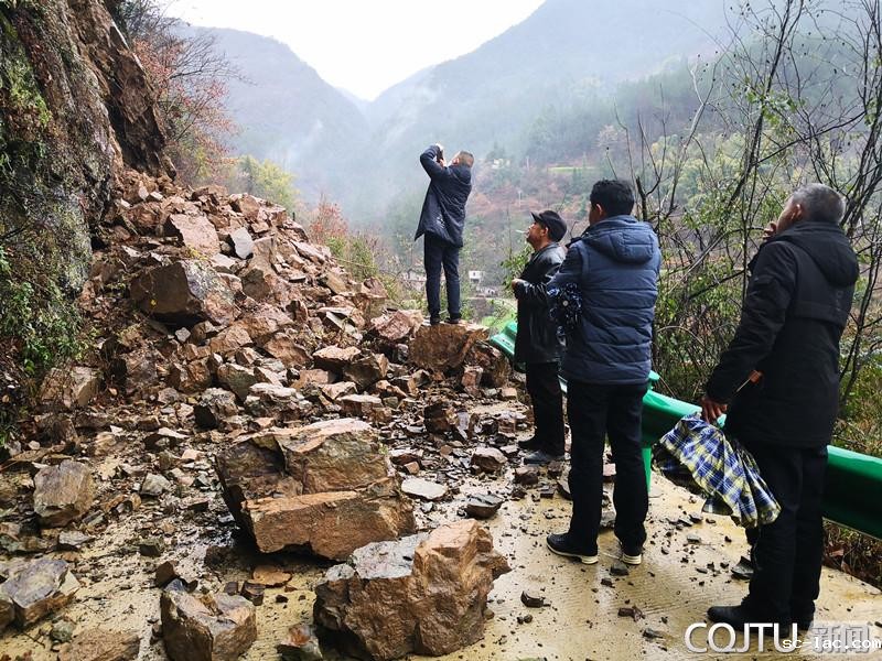 冒雨实地查看马渠湾水井岩路段垮塌点