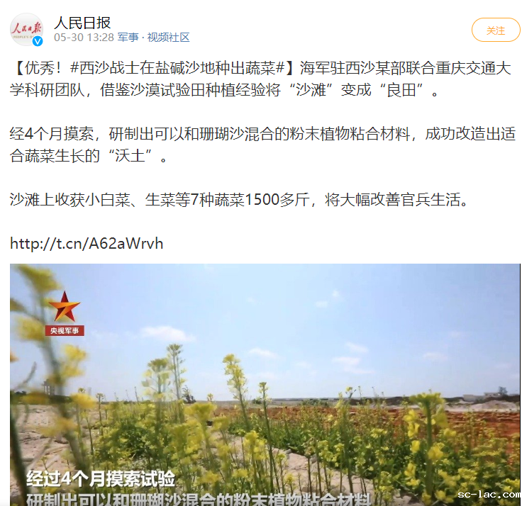 所谓沙变土,是因为永兴岛为珊瑚沙地构造,沙地中含有大量的盐和碱,且缺少淡水,蔬菜很难存活。但是得益于一项新技术,散沙变沃土,驻岛礁军民可以吃上本地产的新鲜蔬菜。