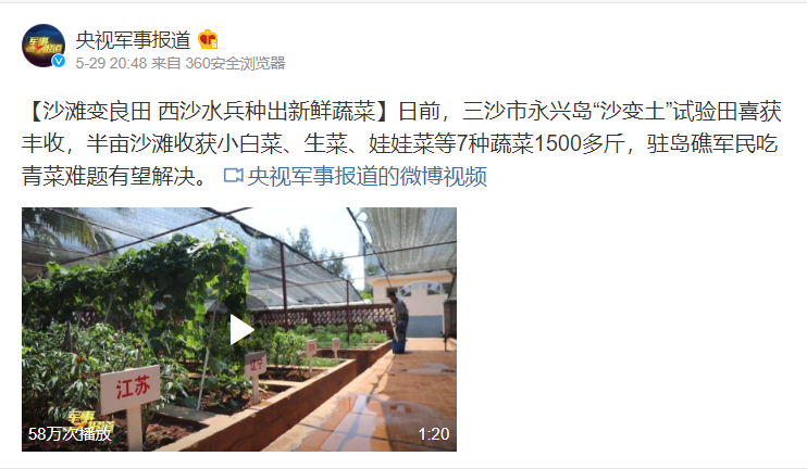 【央视新闻】海南三沙:“海滩”变“良田”西沙海滩种菜获成功