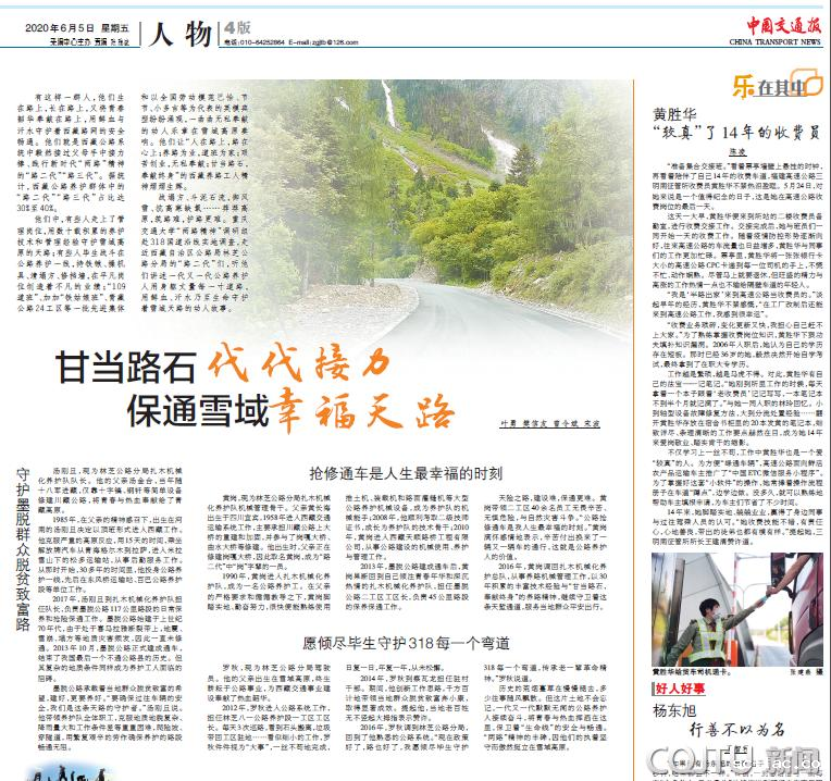 2016年,黄岗调回扎木机械化养护总队,从事养路机械管理工作,以30年积累的丰富技术经验与“甘当路石,奉献终身”的养路精神,继续守卫着这条天堑通道,服务当地群众平安出行。