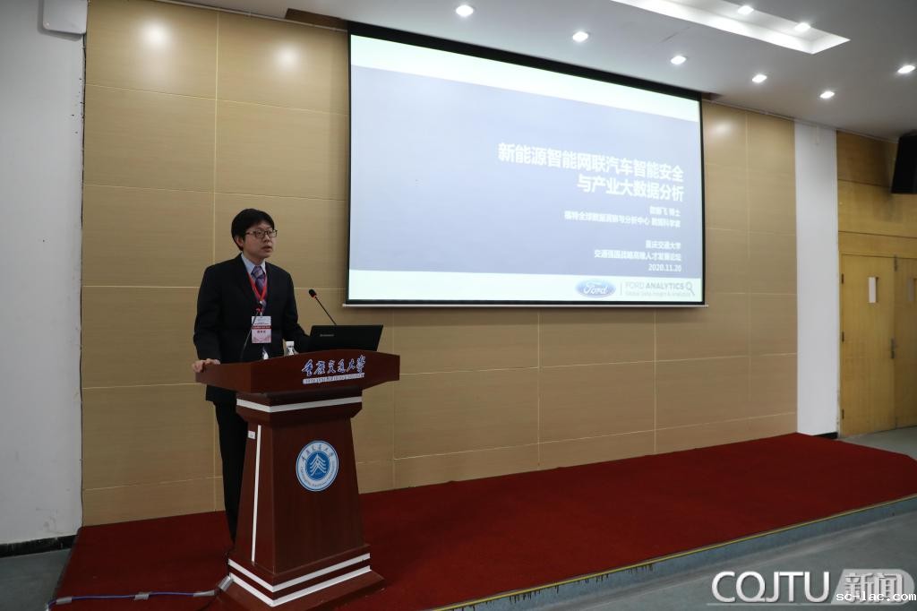 福特全球数据洞察与分析中心数据科学家、特聘研究员詹振飞从城市化趋势、汽车大数据分析、污染气体减排、汽车产业发展等方面作了“新能源智能网联汽车智能安全与产业大数据策略”主题报告。詹振飞研究员表示,新能源智能网联汽车智能安全与产业将在未来交通发展中占据优势地位,重庆的国际国内战略优势地位将进一步凸显。詹振飞研究员建议学校结合现有师资,引进国内外相关领域青年博士,搭建面向智能交通的汽车产业与技术大数据科研团队及平台;加强国际化教育,参与国际合作与竞争;加强与国内汽车相关产业合作,争取承担科研攻关任务,参与制定国家及行业标准;培养面向智能交通学科前沿的本科生、研究生。