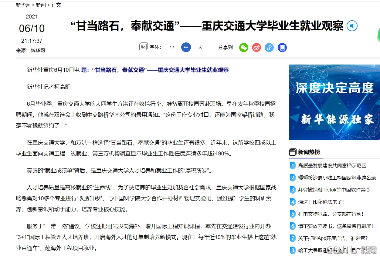 在老伟德网上娱乐,和方洪一样选择“甘当路石,奉献交通”的毕业生还有很多。近年来,这所学校四成以上毕业生面向交通工程一线就业,第三方机构调查显示毕业生工作胜任度连续多年超过90%。